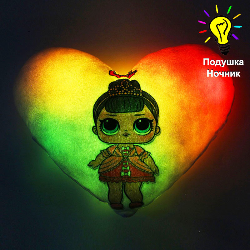 Незвичайна світна подушка із зображенням ляльки LOL буде чудовим і неповторним подарунком для дівчинки.